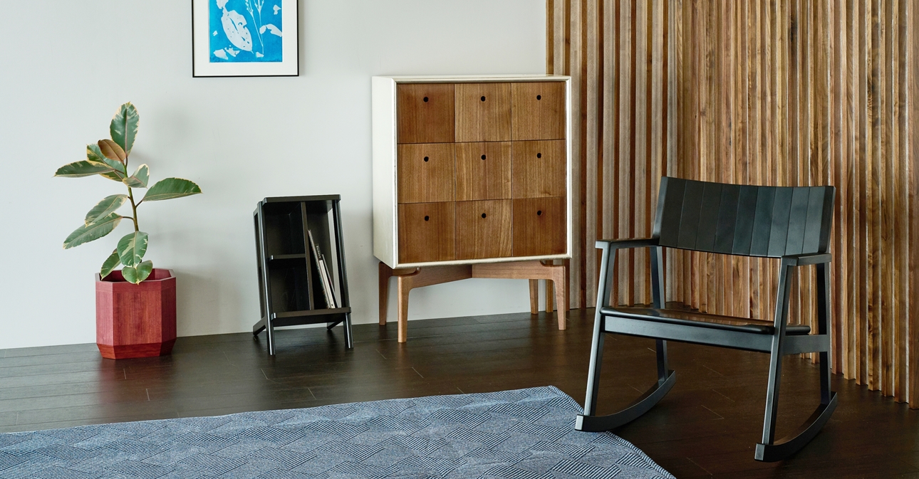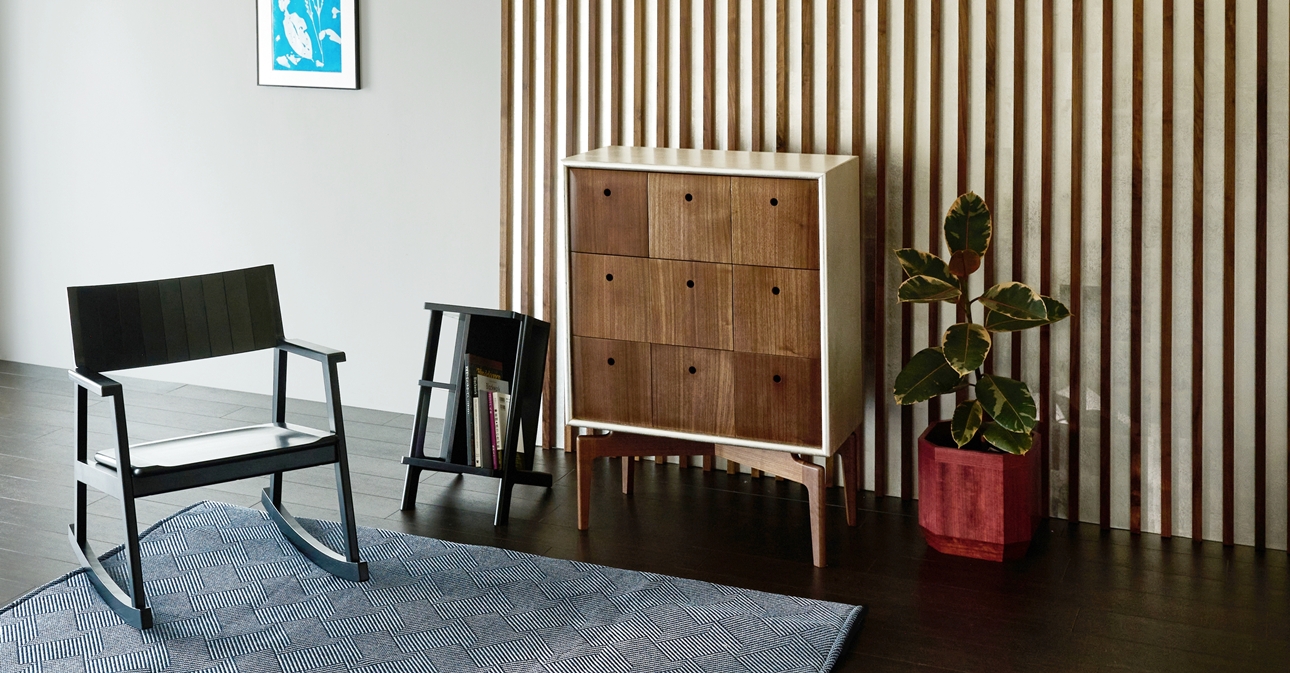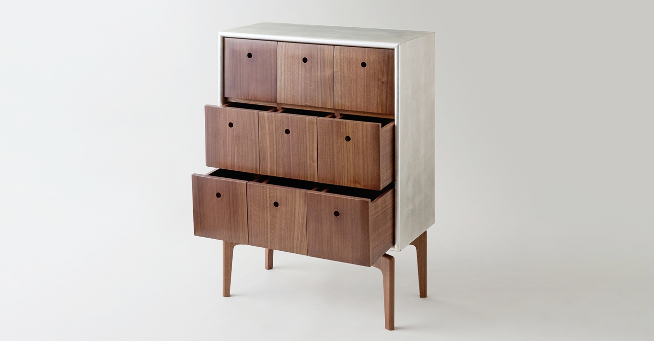 アルティゾンらしく引き出しは底板まで全てウォールナットの無垢板、引き出しが納まった状態の外側の淵は、前板に少し面を取って優しいデザインにもこだわりました。