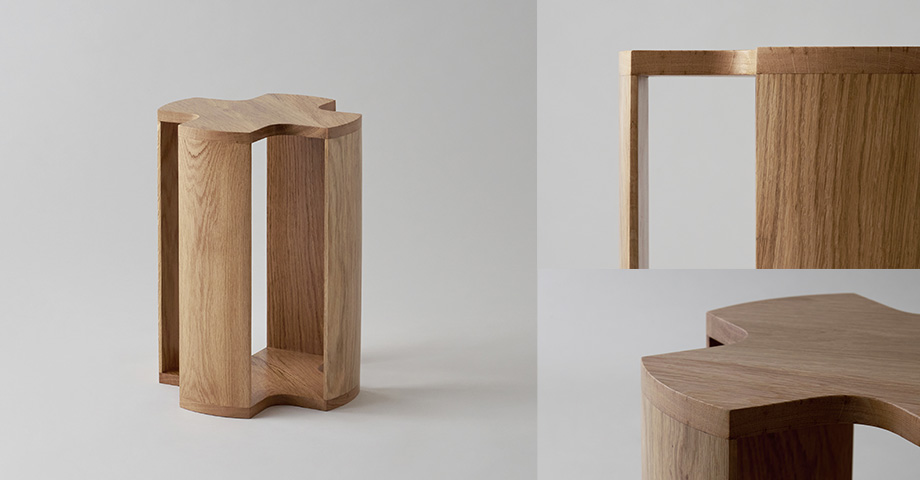 クローバー型?プロペラ型?のデザインのスツールです、高さは470ミリと標準的な高さです。